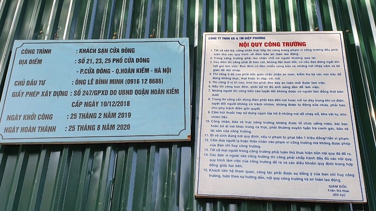 - Thông tin liên hệ của chủ đầu tư, nhà thầu thi công, tổ chức thiết kế và tổ chức giám sát thi công