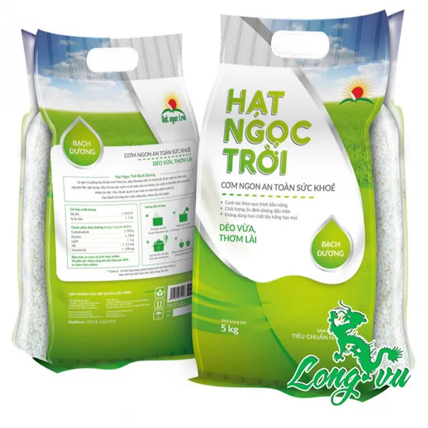 Bao bì gạo thiết kế chuyên nghiệp, chống ẩm tốt, giữ gạo luôn tươi ngon. In ấn rõ nét, thu hút khách hàng.